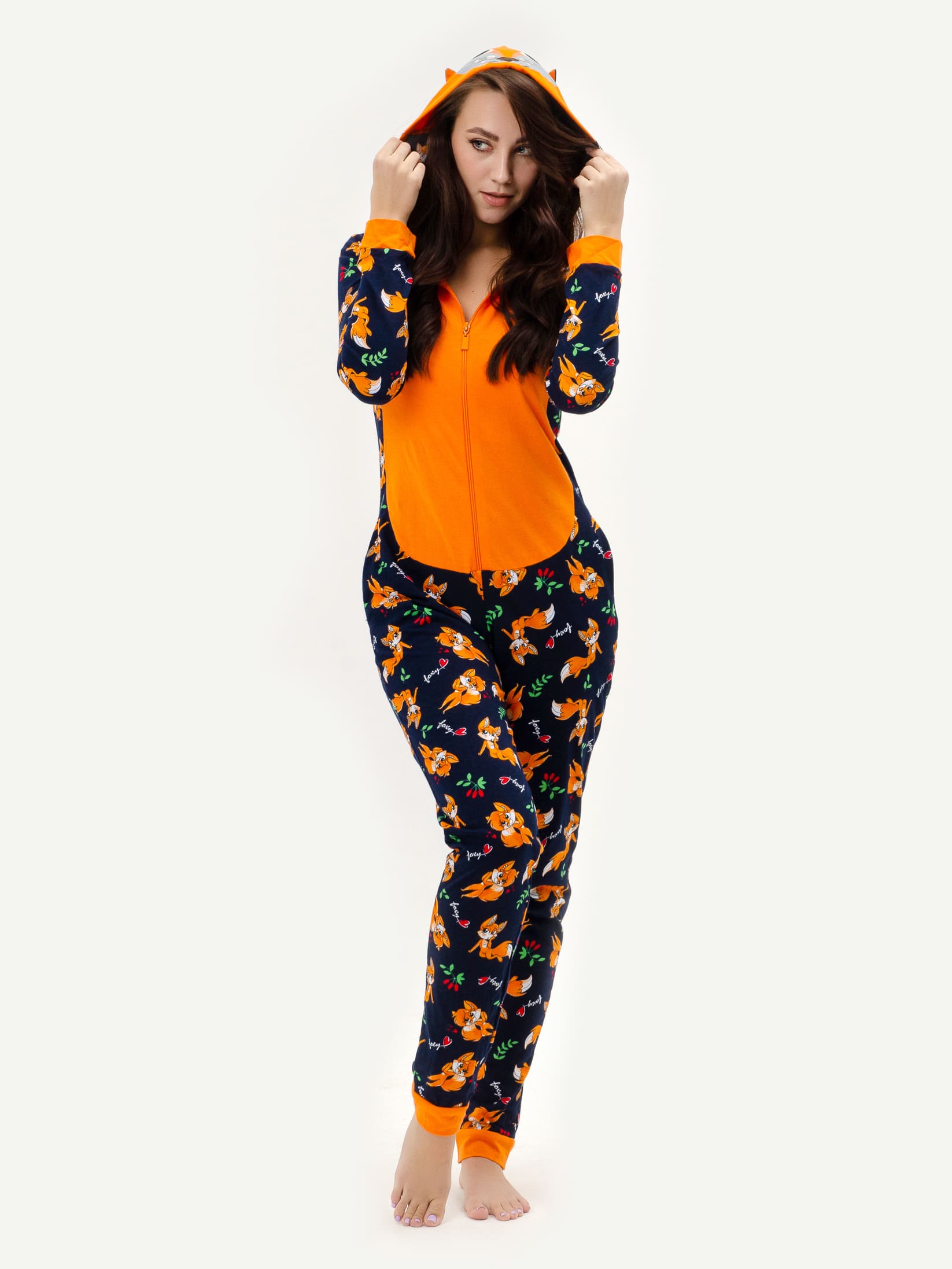 Мода на кигуруми не утихает уже многие годы. И не удивительно! Это комфортное и оригинальное приобретение. Наши модели на молнии имеют длинные штаны и рукава, капюшон с мордочкой и ушками, забавный хвостик и оригинальный принт “Лисички”.