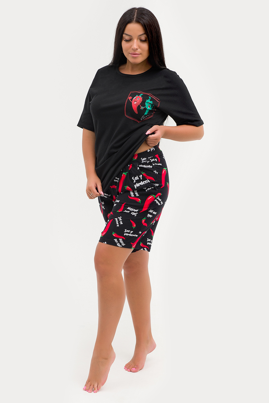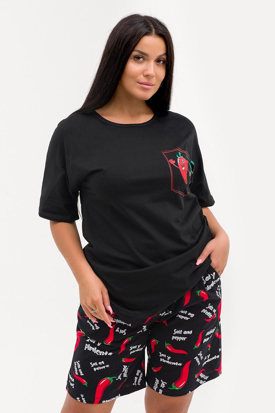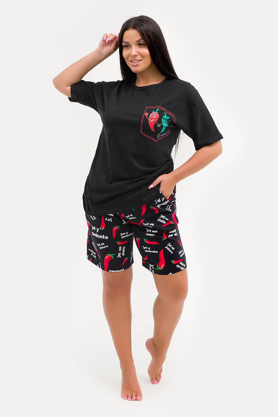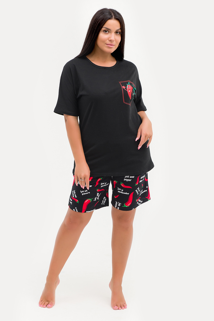Комфорт в каждой детали! Именно так коротко и лаконично можно описать стильный домашний комплект ZARKA. Комплект выполнен в приятных пастельных тонах из 100% хлопковой ткани (исключение модель 29470700 - цвет черный). С точки зрения гигиены эта ткань идеальна, ведь она не вызывает раздражения, а тело в одежде их хлопка может дышать. Если правильно ухаживать за изделиями из хлопка, они сохранят свой первоначальный вид даже после многих стирок. Однотонная футболка с коротким рукавом не стесняет движения. Шорты длиной до колена с карманами и из набивной ткани компаньона - идеальный выбор для любого типа фигуры. Такой комплект идеально подойдет не только для повседневных забот, но и для комфортного сна. А благодаря мягкой резинке эта модель станет удачным выбором для будущих мам. Комплект хорошо смотрится в больших размерах. Размерная сетка модели включает большие размеры. Домашний костюм ZARKA - прекрасный подарок для каждой девушки и женщины! Характеристики