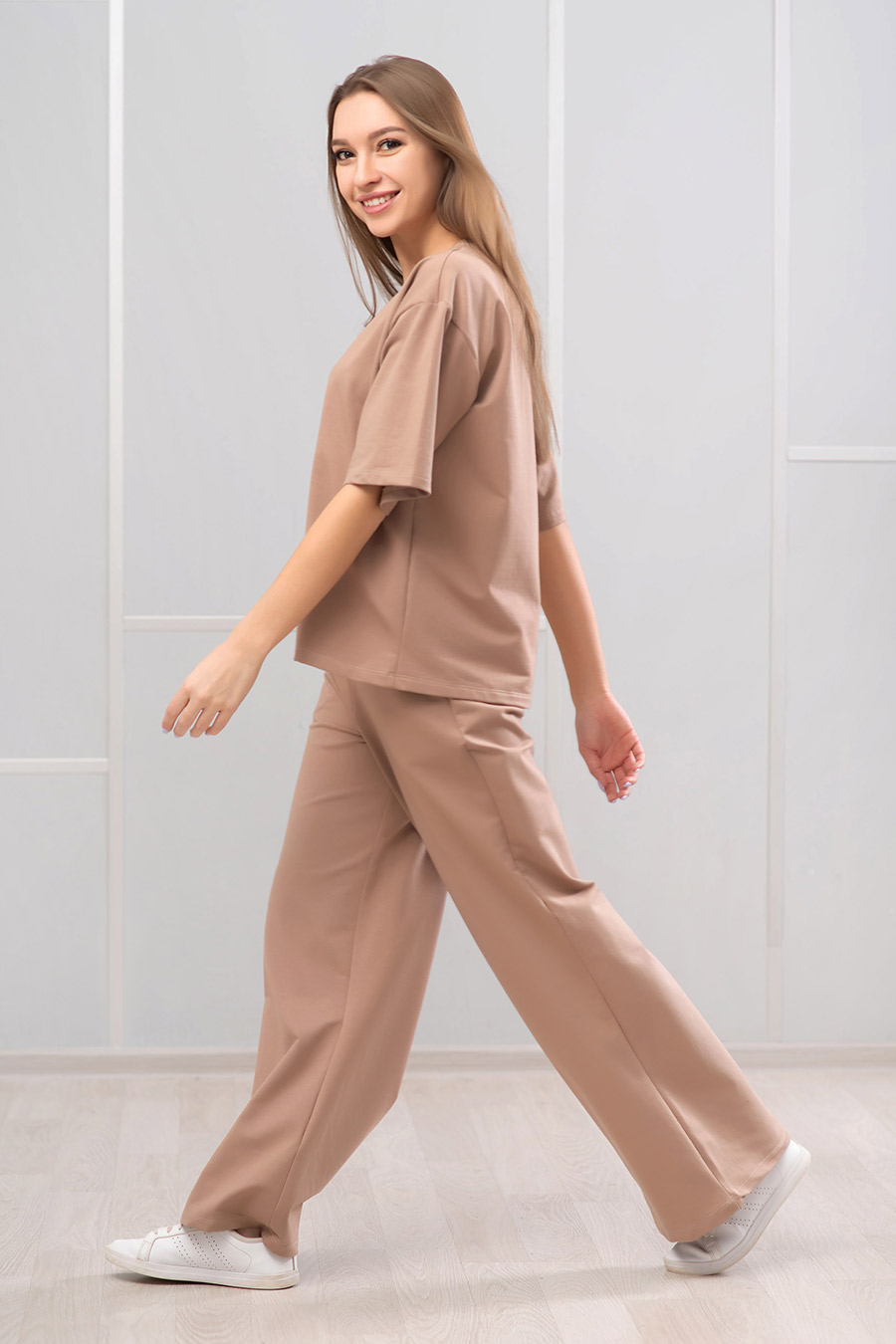Образ активной и успешной женщины уже давно не ассоциируется с неудобными туфлями на шпильках, громоздкими шубами и вызывающей одеждой. Сегодня в тренде комфортная и экологичная одежда для женщин. Подиумами правят стили смарт-кежуал и спорт-шик. Бесконечные варианты спортивных костюмов заняли почетные места в гардеробах модниц. Женский спортивный костюм из футера от бренда Zarka - это стильный и практичный повседневный комплект, который отлично подойдет как для фитнеса, бега или танцев, так и превосходно будет смотреться как домашний костюм или наряд для дачи. Брюки палаццо с футболкой, у которой рукав 1/2 неимоверно удобен на каждый день. Однотонный костюм с посадкой оверсайз подойдет для девушек с любым типом фигуры, грамотно скрывая возможные недостатки. Брюки-трубы с резинкой на талии и футболка свободного кроя будут удобными для беременных. Широкие брюки клеш с карманами очень практичны. Модный костюм превосходный подарок в летний сезон. Характеристики