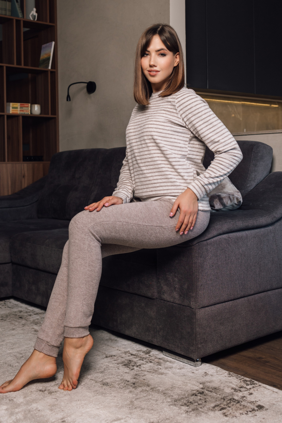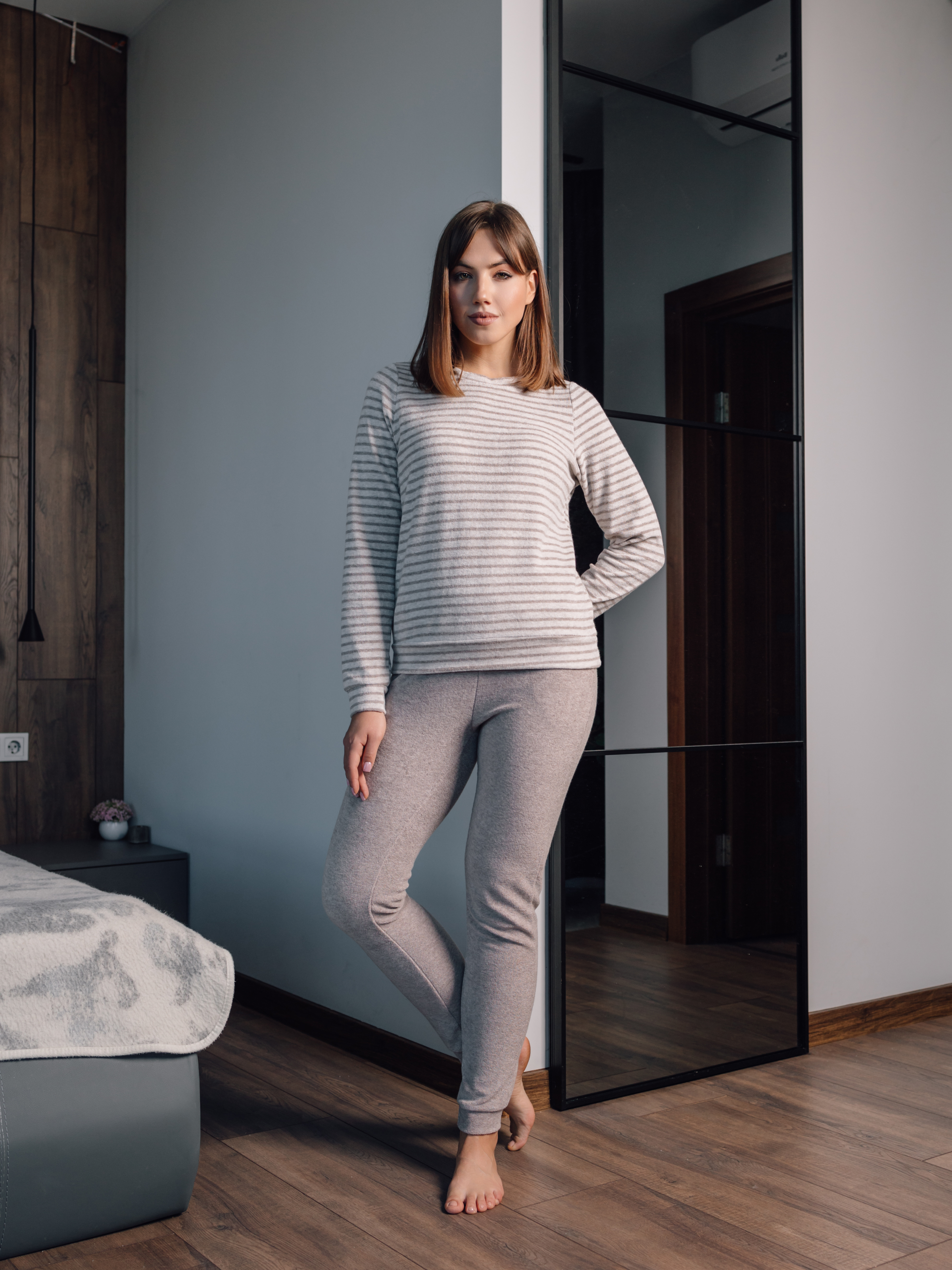 Пижама женская со штанами теплая махровая - уютное сочетание стиля и комфорта, которое понравится и взрослой женщине, и девушке - подростку. Домашний костюм женский с брюками и длинным рукавом имеет округлый вырез горловины, а штанишки прямого кроя на широкой резинке на поясе украшены удобными карманами по бокам. Характеристики