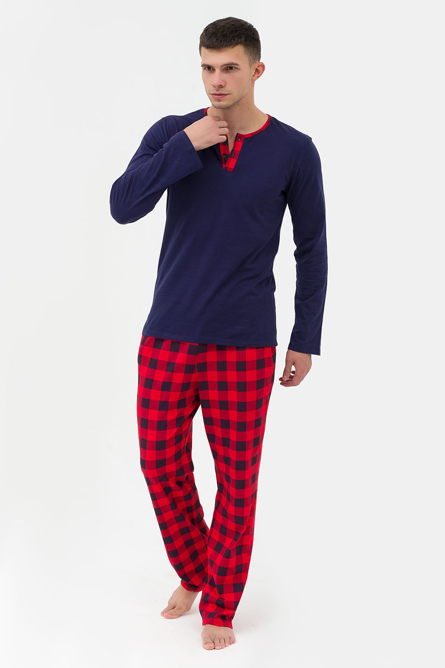 Многие мужчины считают, что нет ничего комфортней для сна, чем обычное нижнее белье. Скорее всего вы просто не пробовали спать в 100% хлопковой пижаме от бренда ZARKA, ее можно купить недорого! Футболка с длинными рукавами на планке с застежкой на 2 пуговицы и практичные брюки в клетку с двумя карманами подарят вам чувство уюта и комфорта. А самое главное, этот комплект может служить не только для комфортного сна, но и в качестве домашней одежды. Материал - мягкое трикотажное полотно в лучшем качестве - 100% хлопок. А это значит, что костюм: воздухопроницаемый, гигроскопичный, гипоаллергенный, не электризуется и очень приятный к телу. Также чистый хлопок снимает негатив и внутреннее напряжение. Ткань слабо поддается растяжению и усадке. Многократные стирки, глажки и прочие манипуляции по уходу хлопковые ткани переносят достаточно хорошо, долгое время, не теряя при этом своих характеристик. Размерная сетка модели включает большие размеры. Сделайте подарок себе и своим близким! Характеристики
