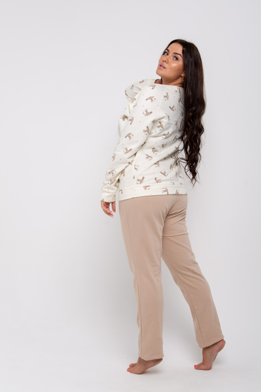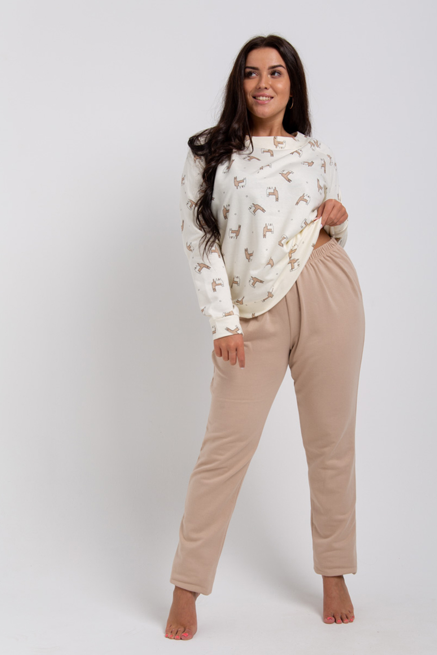 Домашний комплект-двойка из хлопковой ткани который состоит из лонгслива полуоблегающего силуэта с лаконичным принтом и прямых штанов из хлопковой ткани. В пояс брюк вставлена широкая резинка. Это легкие и приятные к телу пижамы предоставят прекрасный и великолепный релакс и сон. Уютная пижама для сна и отдыха, с утеплением. Хлопок 100%. Достоинство наших пижам это гипоаллергенность и экологичность, современные пижамы производятся из безопасных материалов, поэтому они не вызывают раздражений на коже. Простой и легкий уход, пижамы достаточно просто отстирываются, их можно подвергать машинной стирке, если соблюдать все правила стирки они не изменят форму и не поменяют свой насыщенный цвет. Пижаму купить недорого. Размерная сетка включает большие размеры, подойдет беременным. Если Вы не можете определиться с размером - задайте нам вопрос, мы с удовольствием поможем Вам сделать правильный выбор! Сделайте подарок себе и своим близким! Характеристики