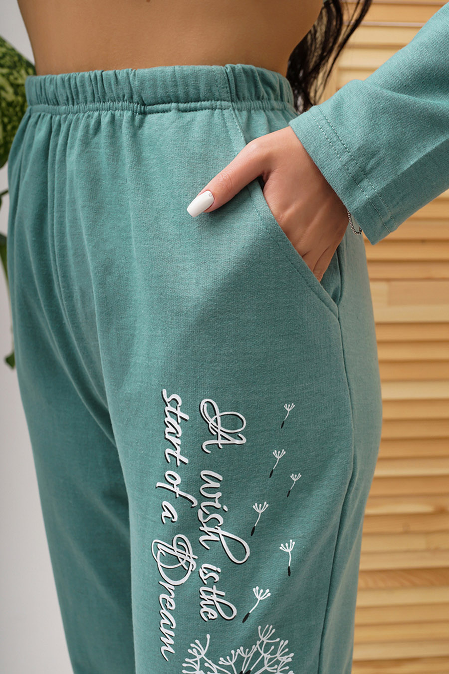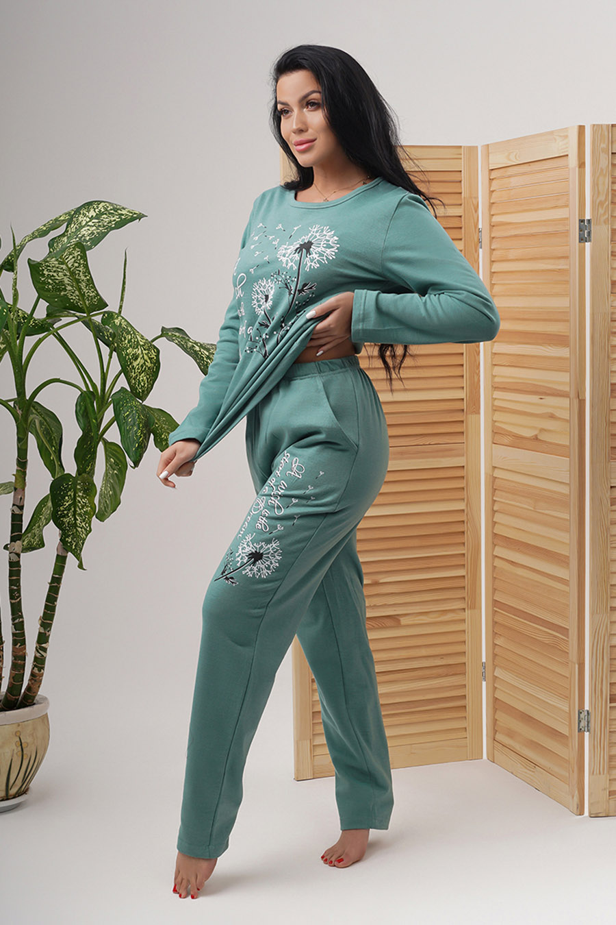 Утепленный женский домашний костюм от бренда Зарка. В прохладный сезон года позаботьтесь о себе и наполните теплом и уютом ваши домашние будни. Милая и комфортная женская пижама для сна и отдыха, в которой легкость, свобода и удобство вам гарантированы. Интересный дизайн, высокое качество, отличное цветовое решение. Изящная домашняя одежда из 100% хлопка. Материал – футер с начесом, мягкий, теплый и дышащий. В нем вы действительно отдохнете и расслабитесь после утомительного и насыщенного дня. Женский домашний комплект с брюками и кофтой. Верх с длинным рукавом и овальным вырезом горловины. Штаны легкие, длинные и прямые. Удобная посадка, эластичная резинка в поясе. Два боковых, прорезных кармана. Модель представлена в мятном цвете с очаровательным принтом в виде одуванчиков и вдохновляющей надписью, а также в интересном кремово-красном сочетании цветов с чудесным принтом. Широкий размерный ряд: 48-56, в том числе большие размеры. Подойдет для беременных и полных женщин. Превосходная одежда для сна от ZARKA - замечательный подарок на Новый год и день рождения. Характеристики