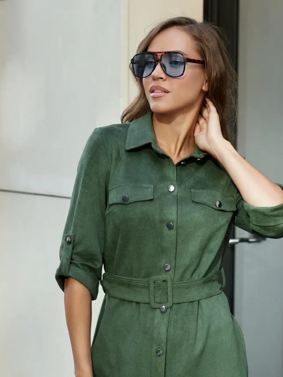 Платье рубашка микровельвет хаки