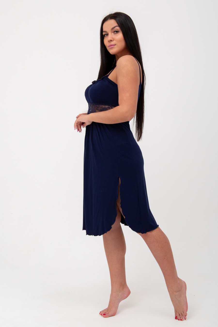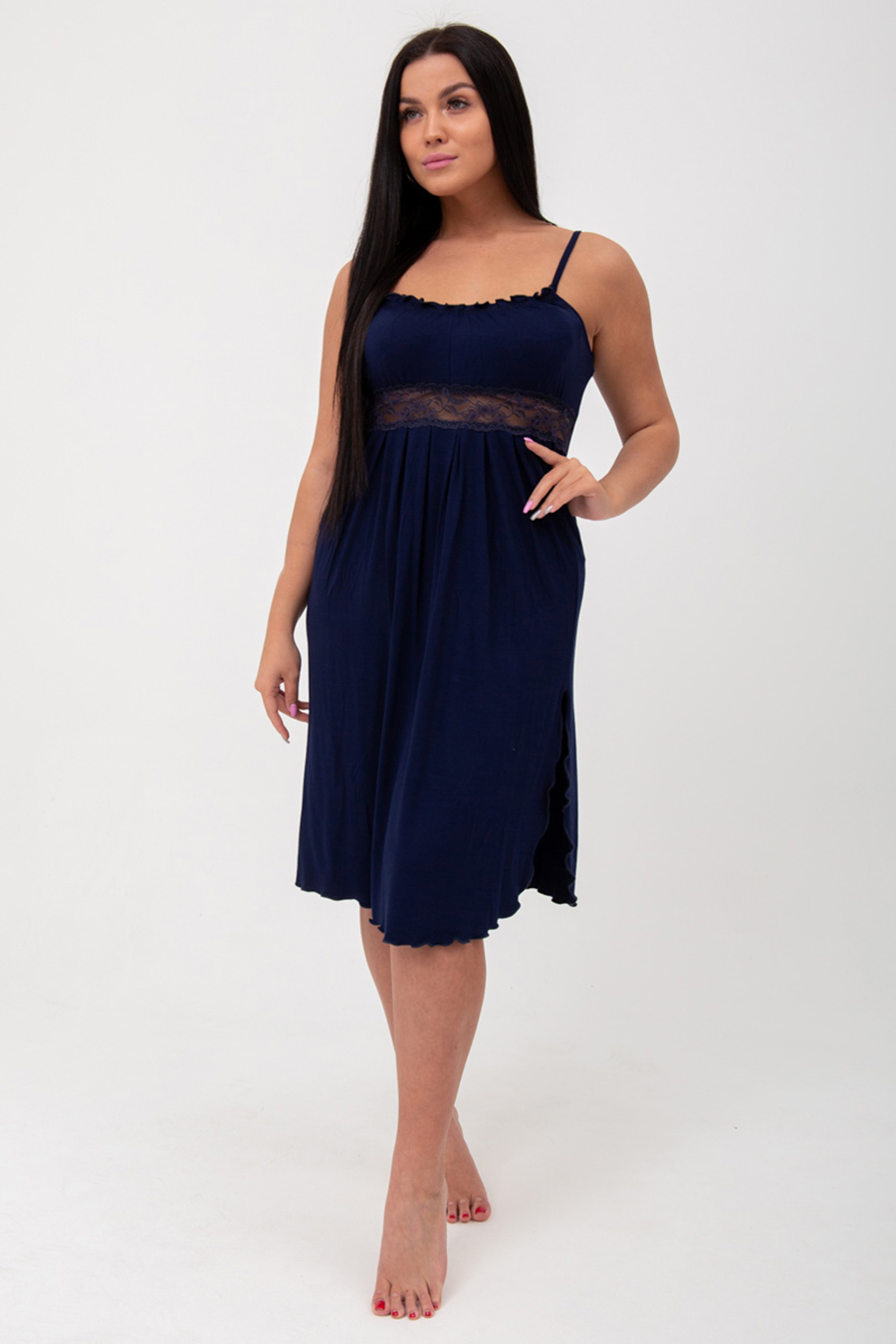 Ночная сорочка женская без рукава на тонких бретелях, подол отделаны изящными рюшами. Вырез на груди с кружевом. Длина ниже колена. Тянущийся материал хорошо подстраивается под особенностями фигуры. Элегантная сорочка отлично подойдет для тех, кто хочет выглядеть превосходно и при этом чувствовать себя комфортно. Идеальна для сна и домашнего использования. Ночнушку купить недорого. Благодаря своему крою и материалу, на 92% состоящему из вискозы и на 8% из лайкры - вы испытаете невероятный восторг от ощущения соприкосновения. Длина ниже колена и соблазнительный вырез до середины бедра, и кружевная отделка подчеркнут вашу женственность. Вискоза очень легкая, абсолютно не создает ощущения тяжести на теле. Материал не образует статического электричества, при этом материал прекрасно стирается, высушивается без всяких повреждений.Размерная сетка модели включает большие размеры, подойдет беременны Позвольте себе быть королевой в сорочке от **ZARKA**! Сделайте подарок себе и своим близким! Характеристики