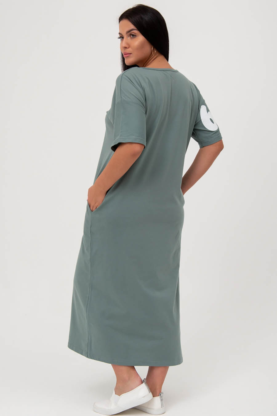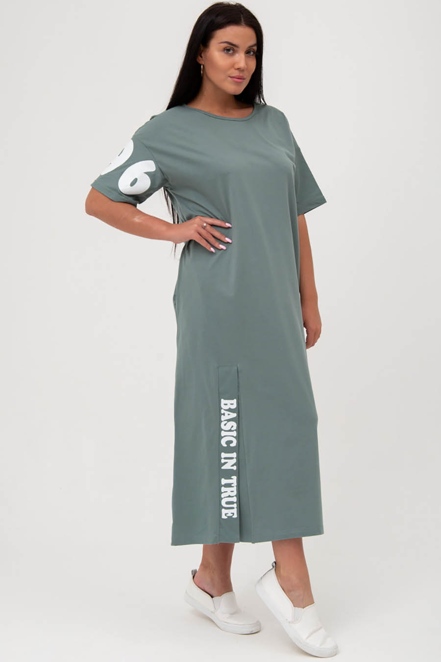 Описание Женское платье-футболка - идеальный модный тренд! Комфортное платье имеет прямой крой и рукава 1/2. Изюминкой модели является разрез на подоле с декоративной надписью, а также числовой узор на рукаве. Удобные прорезные карманы идеально подходят для того, чтобы положить в них телефон или иные необходимые мелочи. Платье отлично подойдет как для летнего сезона, так и для поездок за город и на отдых, прогулок, и повседневной/домашней носки. Материал платья состоит из натурального хлопка, что делает его воздухопроницаемым и гигроскопичным. Платье также слабо поддается растяжению и усадке. Многократные стирки, глажки и прочие манипуляции по уходу хлопковые ткани переносят достаточно хорошо, долгое время не теряя при этом своих характеристик. Размерная сетка модели включает большие размеры. Подойдет беременным и будущим мамам. Платье оверсайз - отличный подарок для всех девушек и женщин! Характеристики
