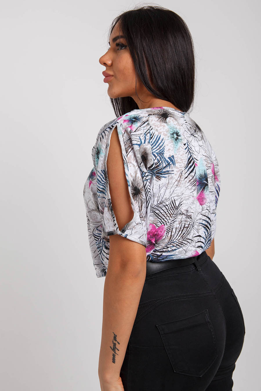Футболка женская в ассортименте с коротким рукавом. Полуприлегающий крой и круглый вырез - элементы базовой модели футболки, однако исполнение в ткани деворе делает её более интересной и стильной. Деворе - удивительная декоративная ткань, которая рисунком и фактурой напоминает витраж. Особенность заключается в том, что это скорее техника декора готовой материи, а не какая-то особенная ткань со специальным переплетением нитей. Материал деворе как правило полупрозрачный, слегка просвечивающий, ткань впитывает влагу и при этом быстро высыхает. Деворе выглядит очень хрупко и деликатно, однако на деле это практичный материал, не выгорает, не становится ломким. Деворе не вызывает раздражения, покраснения кожи и аллергических реакций - это мягкий, нежный материал. Универсальная футболка на все случаи жизни. Размерная сетка модели включает большие размеры, подойдет беременным. Красивая футболка - отличный подарок для Вас и Ваших близких! Характеристики